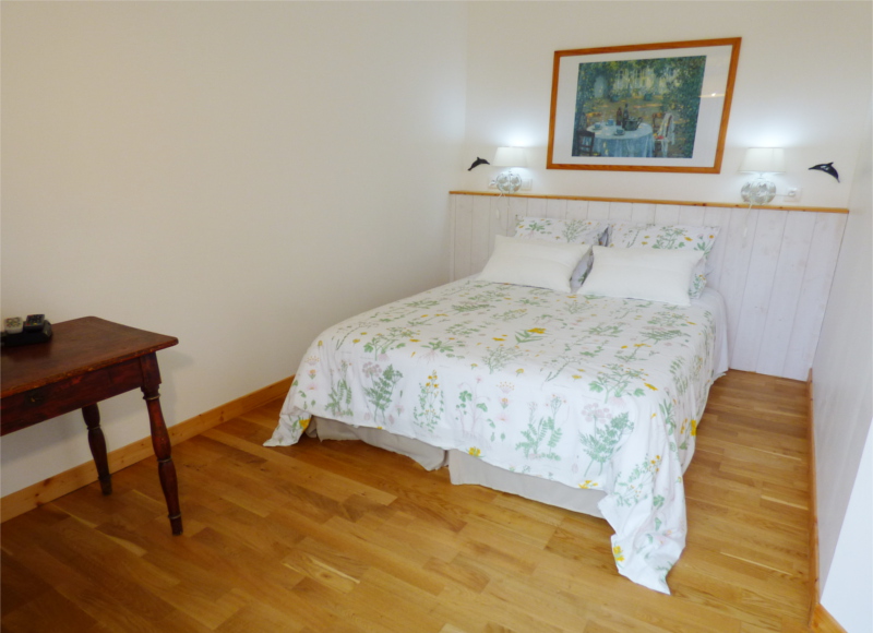 Lit double confort, salle de bain, free wifi, terrasse bois, vue & accès au jardin arboré.